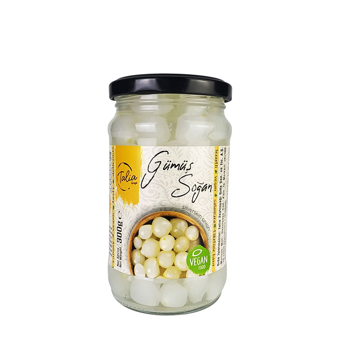 Talia Gümüş Soğan, 300 gramlık ambalajında sunulan, ince ve şeffaf dilimlenmiş, özellikle garnitür ve yemeklerde kullanılmak üzere hazır hale getirilmiş soğandır. Kızartılmış ve çıtır bir dokuya sahip olan bu ürün, yemeklere ekstra lezzet ve tekstür katmak için idealdir. Salatalar, burgerler ve çeşitli yemekler üzerine serpilebilir, ayrıca çorbalar ve mezeler için de pratik bir ekleme sağlar. Hem ev mutfakları hem de profesyonel mutfaklar için kullanışlı bir seçenektir.